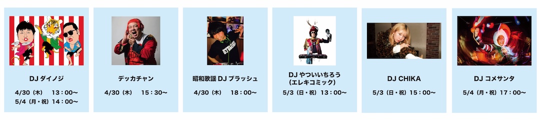 <13:00〜DJダイノジ/15:30〜デッカチャン/18:00〜昭和歌謡DJブラッシュ>